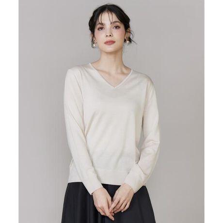 ■デザインシンプルなデザインのVネックニット。着た時のシルエットが大人っぽく上品な印象に見えるよう、細部にまでこだわって仕上げたベーシックアイテムです。また、Vネックニットはシルエットに若干のゆとりを持たせ、気品はそのままにほんのり抜け感が漂うエレガントな印象に。こだわりのネックラインの深さはデコルテを美しく見せてくれます。滑らかで優しく包み込む最高な肌触りで、一目見るだけで質の良さが伝わるハイゲージニットです。■素材世界の名だたるラグジュアリーブランドに糸を提供するイタリアの高級糸紡績メーカー「CARIAGGI社」。その中でも別格といわれるカシミヤとシルクの混紡糸「JAIPUR」を使用しました。一般的な梳毛カシミヤと異なり、より長い繊維長(15マイクロン)の極細繊度の特性を持つ梳毛カシミヤにシルクをブレンドし、繊細な紡績技術により極細に紡がれています。梳毛カシミヤの特性であるソフト感と綿毛のようなタッチに、シルクのエレガントさと繊細な光沢感が絶妙にマッチングした素材です。しなやかで上品な光沢があり、その滑らかで優しく包み込むような極上の肌触りは素肌に着たくなるような風合いです。《CONTESSA/コンテッサ》触れると感じる心地よいエレガンス身に纏う溢れる慶び伯爵夫人のように美しく本物の上質■サンプル撮影商品画像の商品はサンプルです。実際の商品とはサイズや色味、素材、デザイン等の仕様が若干変更になる場合がございます。■カラーについては、可能な限り実際の商品に近いカラーで撮影をおこなっておりますが、照明の関係により実際の製品とは色味が違って見える場合があります。またパソコン・スマートフォンなどの環境により、若干製品と画像のカラーが異なる場合もございます。現物と画像のカラー差異については返品理由となりませんので、予めご了承ください。■サイズ表記はあくまで目安となります。