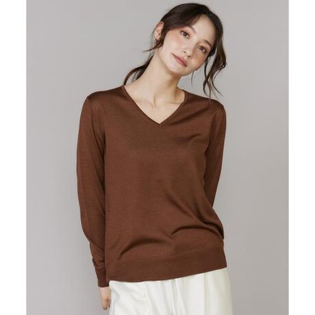 ■デザインシンプルなデザインのVネックニット。着た時のシルエットが大人っぽく上品な印象に見えるよう、細部にまでこだわって仕上げたベーシックアイテムです。また、Vネックニットはシルエットに若干のゆとりを持たせ、気品はそのままにほんのり抜け感が漂うエレガントな印象に。こだわりのネックラインの深さはデコルテを美しく見せてくれます。滑らかで優しく包み込む最高な肌触りで、一目見るだけで質の良さが伝わるハイゲージニットです。■素材世界の名だたるラグジュアリーブランドに糸を提供するイタリアの高級糸紡績メーカー「CARIAGGI社」。その中でも別格といわれるカシミヤとシルクの混紡糸「JAIPUR」を使用しました。一般的な梳毛カシミヤと異なり、より長い繊維長(15マイクロン)の極細繊度の特性を持つ梳毛カシミヤにシルクをブレンドし、繊細な紡績技術により極細に紡がれています。梳毛カシミヤの特性であるソフト感と綿毛のようなタッチに、シルクのエレガントさと繊細な光沢感が絶妙にマッチングした素材です。しなやかで上品な光沢があり、その滑らかで優しく包み込むような極上の肌触りは素肌に着たくなるような風合いです。《CONTESSA/コンテッサ》触れると感じる心地よいエレガンス身に纏う溢れる慶び伯爵夫人のように美しく本物の上質■サンプル撮影商品画像の商品はサンプルです。実際の商品とはサイズや色味、素材、デザイン等の仕様が若干変更になる場合がございます。■カラーについては、可能な限り実際の商品に近いカラーで撮影をおこなっておりますが、照明の関係により実際の製品とは色味が違って見える場合があります。またパソコン・スマートフォンなどの環境により、若干製品と画像のカラーが異なる場合もございます。現物と画像のカラー差異については返品理由となりませんので、予めご了承ください。■サイズ表記はあくまで目安となります。