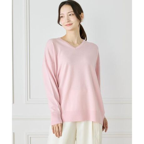 ■デザイン ゆったりとしたサイジングでリラックス感のあるシルエットと、デコルテを美しく見せるVネックのラインと深さにこだわった一枚です。腰回りをしっかりカバーしてくれるチュニック丈で、気になるヒップラインもきれいにカバーしてくれる着心地の良いニットです。■素材厳選された上質な18.5マイクロンのウールに、高級素材のカシミヤをブレンドした素材です。異なる紡績方法で作られた糸を撚り合わせることにより、膨らみ、軽さ、保温性と滑らかなでソフトな表面感を兼ね備え、ハイクオリティーな素材感を存分に纏った上質な肌触りの素材です。※ピンク・グレーはWEB限定カラーです・水洗い可■サンプル撮影商品画像の商品はサンプルです。実際の商品とはサイズや色味、素材、デザイン等の仕様が若干変更になる場合がございます。■カラーについては、可能な限り実際の商品に近いカラーで撮影をおこなっておりますが、照明の関係により実際の製品とは色味が違って見える場合があります。またパソコン・スマートフォンなどの環境により、若干製品と画像のカラーが異なる場合もございます。現物と画像のカラー差異については返品理由となりませんので、予めご了承ください。■サイズ表記はあくまで目安となります。