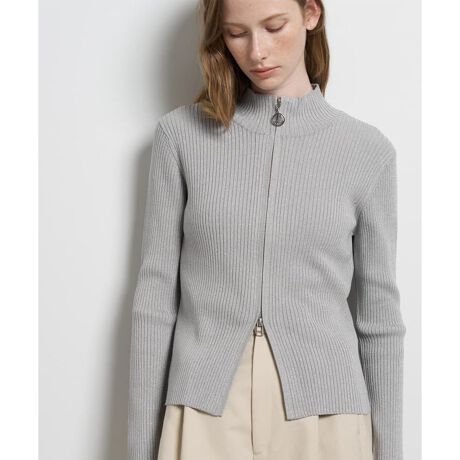 ハイネック&フロントジップデザインがスポーティーながらも、繊細なラメの光沢が、上品で大人な印象のニット。