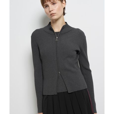 細やかなラメのため、しなやかでさらっとした肌当たり。ファスナーの引手にはジャンヌ・ランバンのイニシャルでもあるJLマークをあしらったプレートを使用。ダブルジップのため、下のファスナーを少し開けたスタイリングもおすすめ。裾がスリットのように開くため、腰回りにもゆとりが生まれ、様々なボトムスと合わせて頂きやすい1着。
