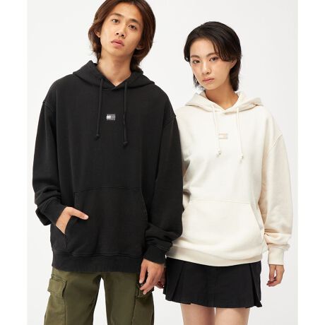 パネル切り替えと刺しゅうで構成されたトーナルフラッグが後ろ姿を飾るパーカー。前中央にはモノトーンフラッグのワンポイントを施しました。一見シンプルでありながらブランドのアイデンティティが存分に詰め込まれた1枚。また、身幅を広く設けたリラックスフィットシルエットが、装いに適度な抜けを与えます。裏地:裏毛