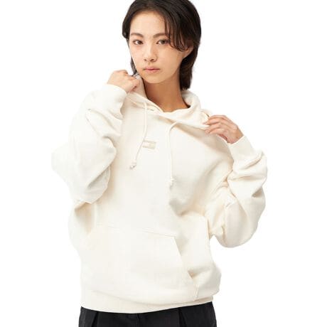パネル切り替えと刺しゅうで構成されたトーナルフラッグが後ろ姿を飾るパーカー。前中央にはモノトーンフラッグのワンポイントを施しました。一見シンプルでありながらブランドのアイデンティティが存分に詰め込まれた1枚。また、身幅を広く設けたリラックスフィットシルエットが、装いに適度な抜けを与えます。裏地:裏毛