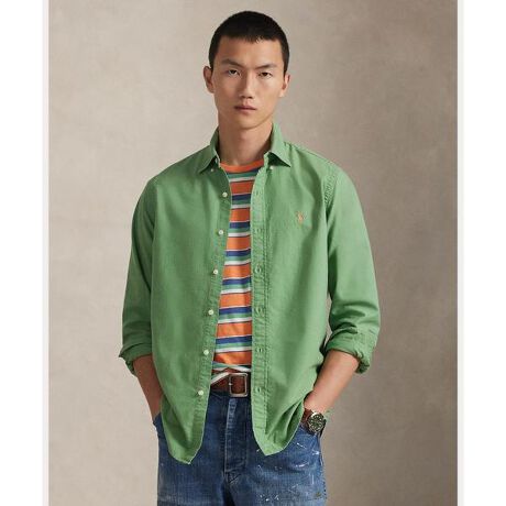ガーメント染めとウォッシュ加工を施したコットン オックスフォード。初日から着込んだ風合いを演出。Ralph Laurenは、コットン栽培を国際的に改善するためにBetter Cotton(TM)と連携しています。Better Cottonは農業従事者に対し、水の効果的な利用、土壌と自然生息地の健康に対する配慮、有害性の高い化学物質の利用の削減、適正な労働原則の実施について、トレーニングを提供しています。・クラシックフィット:Ralph Laurenで最もゆったりとしたシルエット / 低いアームホールとゆったりとした袖・ボタンダウンのポインテッドカラー / ボタン付き前立て / 長袖、ボタン付きバレルカフス・快適なフィットと動きやすさを実現する、ボックスプリーツが入ったスプリットバックヨーク・左胸にシグネチャーのポニー刺繍・本商品は物質収支方式に則って材料を調達しているため、全ての製品にBetter Cottonが含まれない可能性があります。この素材の自然な特性により、生地や布張りの室内装飾品に色移りすることがあります。・モデル身長185cm、着用サイズM※ラルフ ローレンのシャツは、袖口がまくられた状態で納品され、そのままの状態で保管されている場合があります。デザインや商品特性を活かす為に、あえてこのような工夫をしておりますので、予めご了承ください。 【素材】・本体:綿 100% 装飾部分を除く【生産国】バングラデシュ