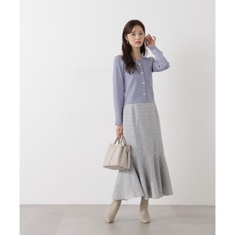 春先から着られるツイードスカート。ハイウエストデザインのマーメイドラインで、脚長効果を期待できます。後ろウエストはゴム仕様でフィット、しっかり見えつつ、動きやすさも嬉しいポイントです。春カラーニット、キレイめブラウスと相性バツグンです。