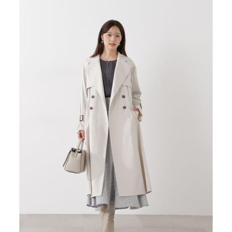 PROPORTION定番のベーシックトレンチコート。シワになりにくくキレイなシルエットに拘ったデザインです。今年はウエストリボンを後ろで結んだ時に可愛く見えるようアップデート。共布ベルトでウエストマークするとスタイルアップ見えします。スカートもパンツも合わせやすく、通勤シーンから休日スタイルまで活躍してくれます。
