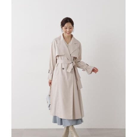 PROPORTION定番のベーシックトレンチコート。シワになりにくくキレイなシルエットに拘ったデザインです。今年はウエストリボンを後ろで結んだ時に可愛く見えるようアップデート。共布ベルトでウエストマークするとスタイルアップ見えします。スカートもパンツも合わせやすく、通勤シーンから休日スタイルまで活躍してくれます。