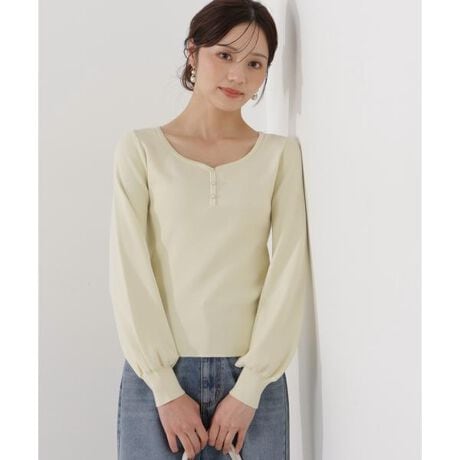 デコルテがキレイに見えるハートネックデザインの総針ニット。前ボタンがポイントで、程よいシンプルさがコーディネートしやすいです。ONにもOFFスタイルにも活躍してくれる、春にぴったりなキレイなカラーを揃えています。