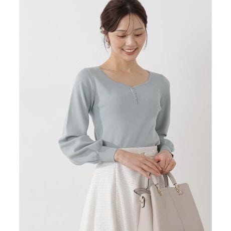 デコルテがキレイに見えるハートネックデザインの総針ニット。前ボタンがポイントで、程よいシンプルさがコーディネートしやすいです。ONにもOFFスタイルにも活躍してくれる、春にぴったりなキレイなカラーを揃えています。