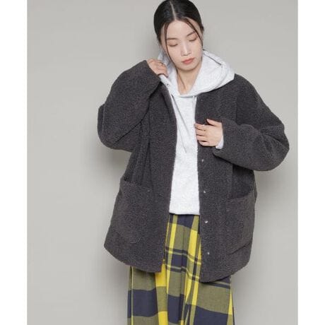 ・軽くさっと羽織りやすいボア素材のミドルコート