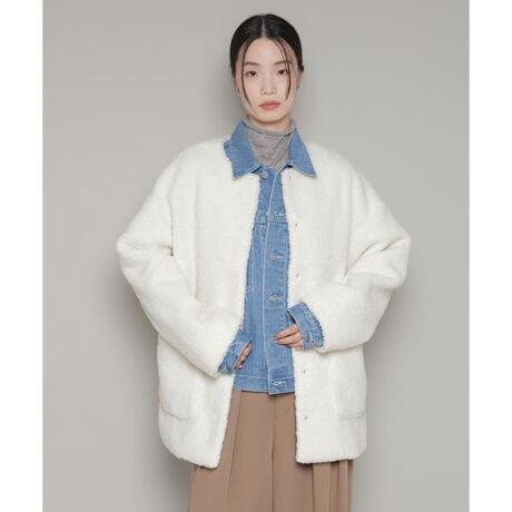 ・軽くさっと羽織りやすいボア素材のミドルコート
