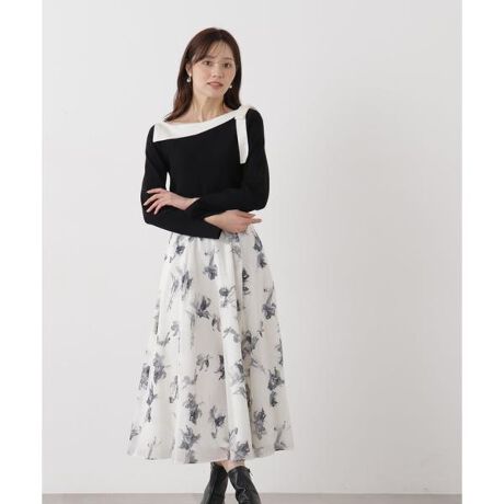 オリジナルの春らしい爽やかな花柄が目を引くフレアスカート。PROPORTIONオリジナルの線画タッチ柄が、甘すぎない大人かわいいアイテムに。ふわっと広がるレディなフレアシルエットに、表面感のあるシアーオーガンジー素材を使用することでトレンド感をプラス。春先まで長く着用いただけます。
