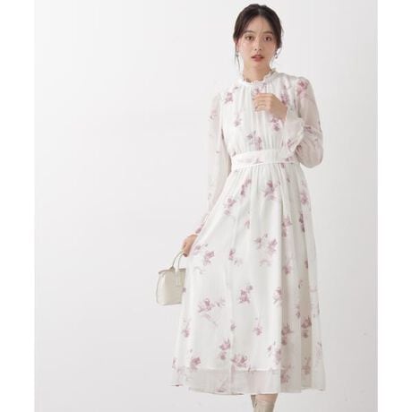 オリジナルの春らしい爽やかな花柄が目を引くギャザーワンピース。程よい透け感のある生地の上に、PROPORTIONオリジナルのプリント柄を入れています。手首をきゅっと絞めたキャンディースリーブがアクセント。ウエストには無地パイピングを入れており、上品で高見えするデザインになっています。コートを羽織ると春を意識したコーディネートが叶います。