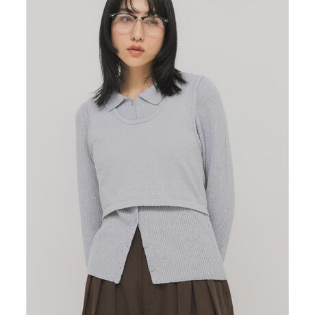 表面感のあるブークレ素材を使用したニット。シャリ感はありつつ肌触りの良い糸を使用しており、レイヤードデザインは1枚で主役級のスタイリングが簡単に叶います。セット使いはもちろん、別々でも使用いただけるので着回し力の幅も広がるアイテムです。ボリュームのあるボトムから、すっきりとしたスカートまで合わせられます。