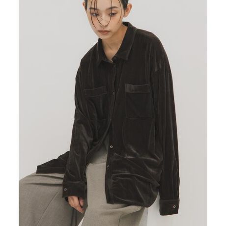 落ち感のあるベロアを使用した大人シャツが登場。身体のラインを拾い過ぎないサイジングは女性らしいスタイリングにマッチします。重すぎない素材なのでいつもの着こなしに合わせるだけで抜け感を叶えます。トップスとしてだけでなく羽織としても活躍する1着です。
