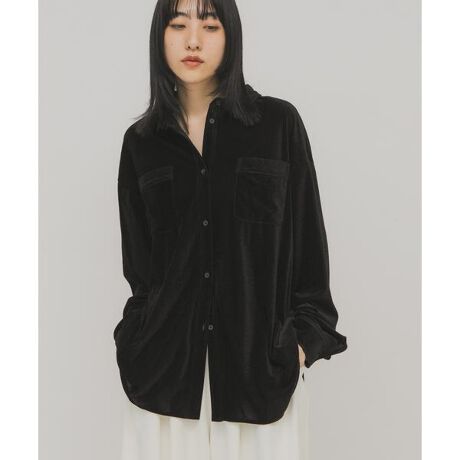 落ち感のあるベロアを使用した大人シャツが登場。身体のラインを拾い過ぎないサイジングは女性らしいスタイリングにマッチします。重すぎない素材なのでいつもの着こなしに合わせるだけで抜け感を叶えます。トップスとしてだけでなく羽織としても活躍する1着です。