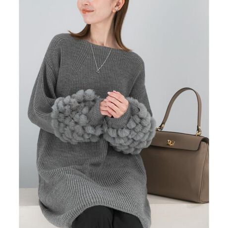 袖にドッキングさせたファーが冬らしい華やかさを演出するニットワンピース。畔編みのすっきりとした縦ラインが表情を生み、一枚でも着用しやすいデザインに仕上げました。顔周りをすっきりと見せるボートネックは、タートルネックのインナーを重ねても◎シルエットを拾いすぎない程よくゆとりのあるサイズ感で、ブーツと合わせるだけで旬な冬コーデが完成します。