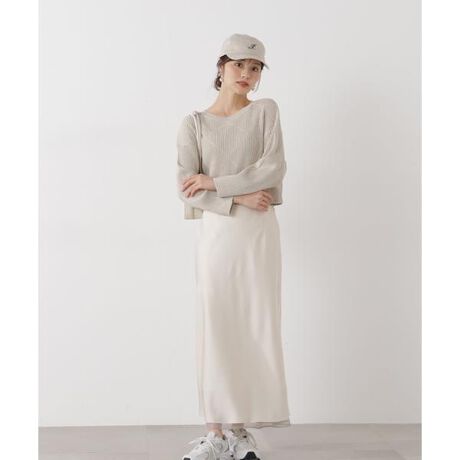 品のある光沢感が特徴のサテンナロースカート。キレイなナローラインが女性らしさを引き立てるデザインです。裾にはシアー素材を合わせており足元を軽やかに演出。シンプルながらも華やかな印象を叶えてくれます。