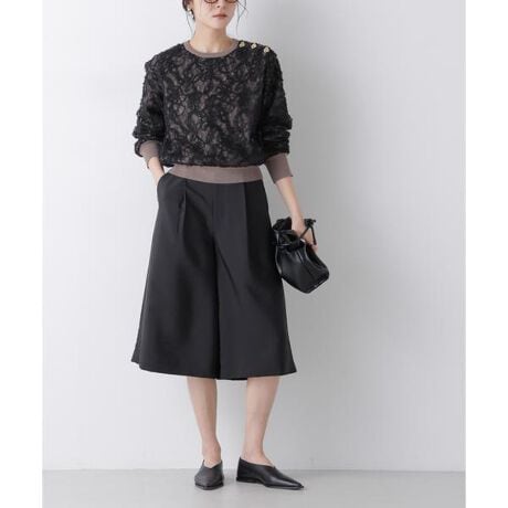 キュロット丈とややロー気味なウエストラインのバランスが、今期らしいシルエットを演出するキュロットパンツ。タックを取りボリュームのある分量にしつつ、エアリーな素材感で軽やかなスタイリングにまとまる一着。シンプルなニットに合わせてベルトマークをしたり、ブラウスやジャケットに合わせた今季らしい着こなしもおすすめです。