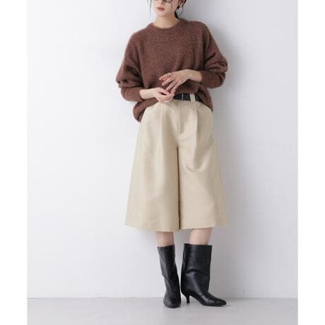 キュロット丈とややロー気味なウエストラインのバランスが、今期らしいシルエットを演出するキュロットパンツ。タックを取りボリュームのある分量にしつつ、エアリーな素材感で軽やかなスタイリングにまとまる一着。シンプルなニットに合わせてベルトマークをしたり、ブラウスやジャケットに合わせた今季らしい着こなしもおすすめです。