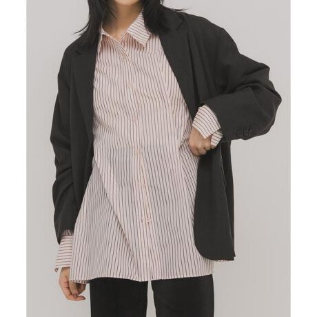 アシンメトリーに施したタックが様々な動きを見せてくれるストライプ柄シャツ。裾に向かってフレアになったシルエットもポイントです。ゆったりとした身幅ながらも、ウエストがシェイプしたように見えます。カジュアルなデニムから女性らしいアイテムまで合わせていただけます。