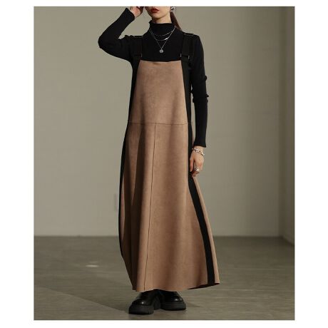 【ワンピース】 レディース ロング スエード フレア カジュアル モード 体型カバー 秋 冬