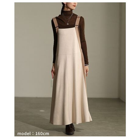 【ワンピース】 レディース ロング スエード フレア カジュアル モード 体型カバー 秋 冬