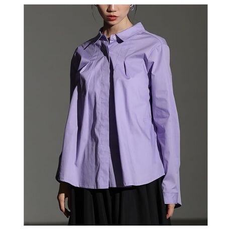【ブラウス】 トップス シャツ パープル 紫 マスタード 長袖 綿 コットン フレア ステッチ 冬服