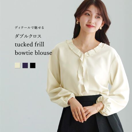 【 ディテールで魅せる 】 ダブルクロス・タックフリルボウタイブラウス