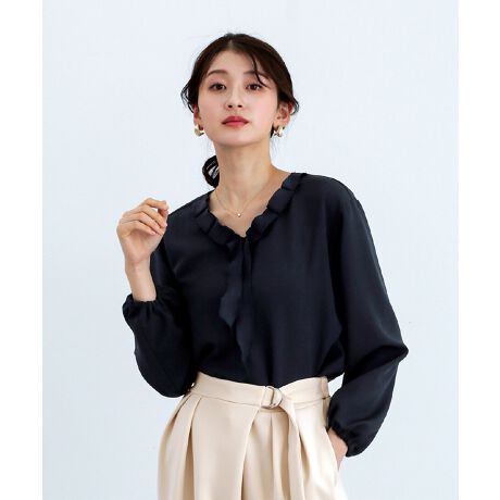 「 優美に揺れる タックフリルボウタイブラウス 」