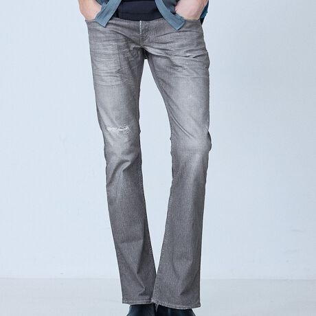 [型番:02520050054]Trompeloeil Flare Denim Pants【素材】超高性能なプリント機を使用し、デニムと遜色ないデニム調を表現しました。柔らかな穿き心地でストレッチも効いています。 【デザイン】ブランドらしい、上品なフレアシルエットを採用。足長効果が有り、美脚効果抜群です。【コーディネート】レザーやジャケット、シャツ合わせは勿論のこと、足元はスリッポンやポインテッドブーツとの相性も抜群です。