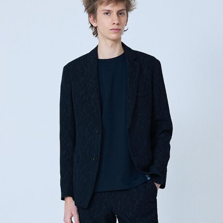ブランドらしい幾何学柄をシャープにジャガードで表現した素材を使用。ストレッチの効いた立体的なウネが特長的。一枚でも透けない肉感と、ポリウレタンを使用し生地を追い込むことで生まれた適度なハリ感が美しいシルエットを演出します。