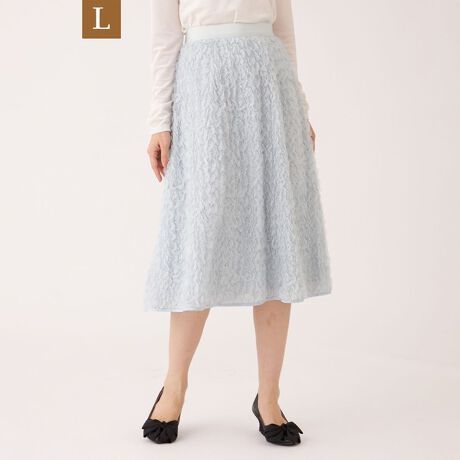ウエストゴム仕様で履きやすく、非常に軽くシーズンレスで着用できるスカート。フェザー生地が華やかな印象を演出します。