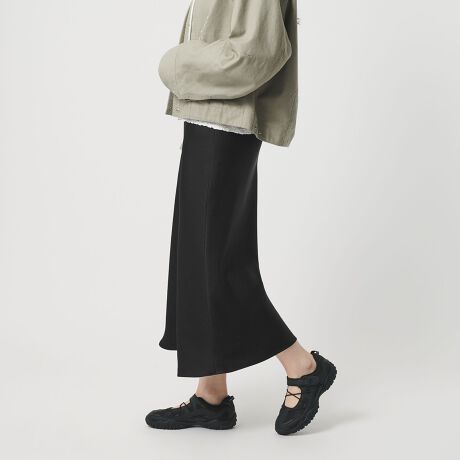 しなやかなマーメイドラインが品の良さを漂わせるサテンフレアスカート