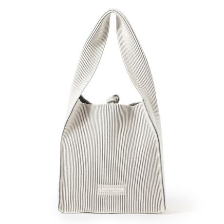 タスキのように太幅のショルダーが特徴のリバーシブル仕様のニットバッグ。