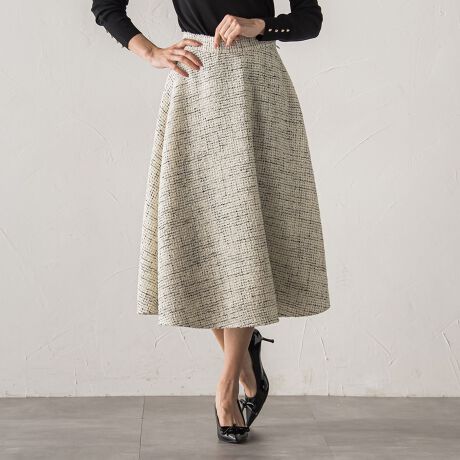表面のヘアリー感がウォーム感たっぷりのツイードフレアースカート。
