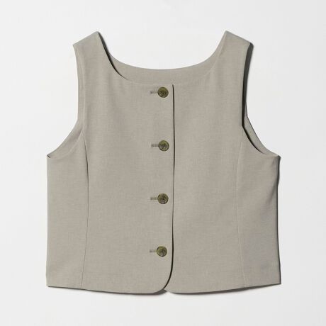 スクエアネックでレディライクなムードが薫るベスト。