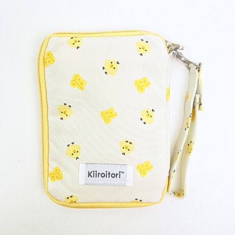 キイロイトリのチラシ柄がかわいいパスポートポーチです。フリーポケット2つ、ファスナーポケット、メッシュポケットと、ポケットいっぱいで使いやすい♪パスポート以外のものを入れても◎