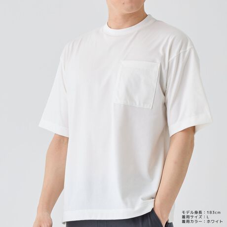 ネックに消臭機能付き天テープ、左胸にはスクエア型のパッチポケットをアクセントに、裾脇はサイドスリットを入れたデザインを採用しスタイリッシュな印象に。