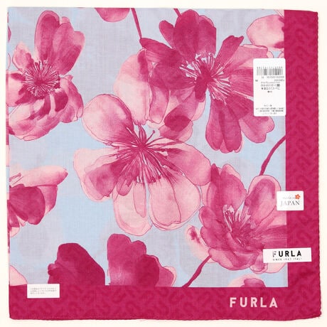 水彩タッチの繊細な花柄とユニークなカラーが特徴のプリントハンカチです。FURLAのアーチロゴが織り込まれたジャカード生地を使用しています。手を拭くだけでなく、食事の際に膝に広げたり首元に巻くなど、様々な使い方のできる大判プリントハンカチです。