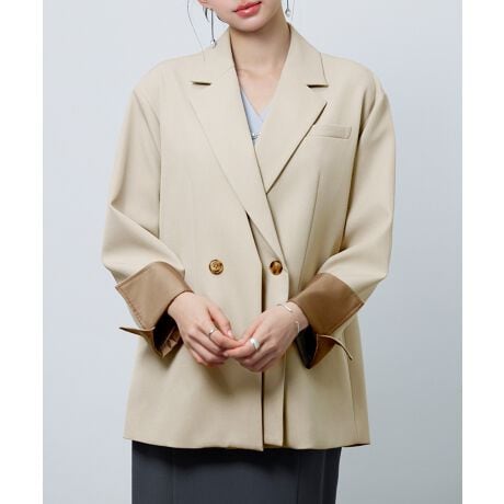 ジャケット レディース アウター テーラードジャケット ダブルボタン レイヤード風 ロング丈 ポケット付き ゆったりシルエット きちんと感 配色カフス 厚手 入学式 卒業式 通勤 女の子 SAISON DE PAPILLON【レイヤード風テーラードジャケット】ミドルジャケット オフィス 普段使い きれいめ セゾンド パピヨン