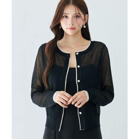 ニットカーディガン レディース トップス シアーニット プルオーバー 透け感 肌見せ 2way レイヤード 配色デザイン パイピング 薄手 大人 きれいめ フェミニン トレンド SAISON DE PAPILLON【透け感がトレンドライクなシアーカーディガン】シアーカーデ シアー素材 クルーネック オフィス 普段使い セゾンドパピヨ