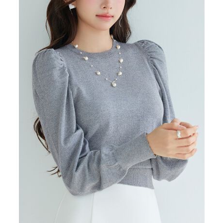 ニット レディース トップス クルーネックニット プルオーバー ギャザースリーブ パフスリーブ ボリューム袖 裾リブ 袖リブ ブラウジング裾 通勤 きれいめ フェミニン 可愛い シンプル 女の子 SAISON DE PAPILLON【ギャザースリーブがフェミニンなクルーネックニット】ハイゲージ オケージョン オフィス 普段使い きちんと感 セゾンド パピヨン