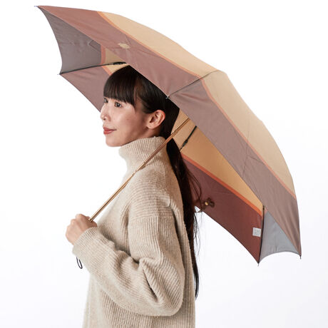 シンプルなバイカラーとワンポイントロゴ刺繍がポイントの折りたたみ雨傘。どんなお洋服にも合わせやすいシンプルスタイルは大事な人への贈りものにもお勧めです。自社の日本工場で丁寧に作られた傘はこだわりの1本として長く愛用いただけます。