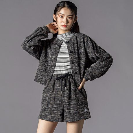 カーディガンとショートパンツのセットアップは、バランス感が絶妙な“オトナかわいい”スタイル。