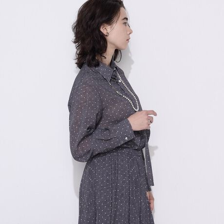 ふくらみと程よいハリのあるボイル素材をベースにしたドットプリントです。