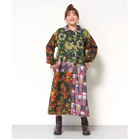 ◆花柄×チェックが映える主役ワンピース(大きいサイズ) ◆