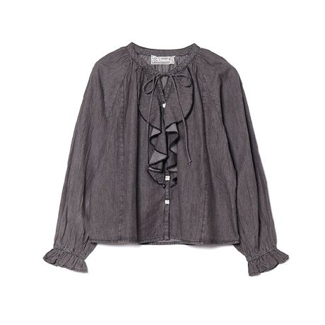 前あきのフリルが視線を集める、存在感たっぷりのデニムブラウスが登場。