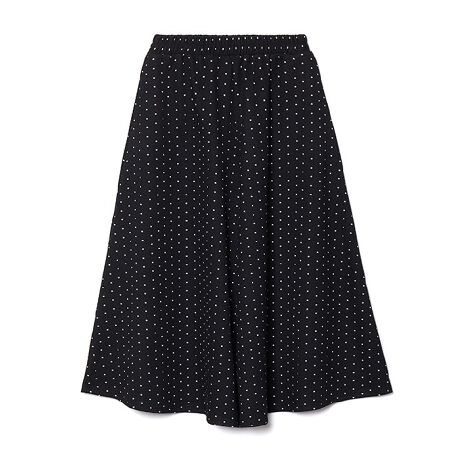 小さなドット柄が可愛らしさの中に品を添え、幅広い年齢の方に似合うフレアパンツです。