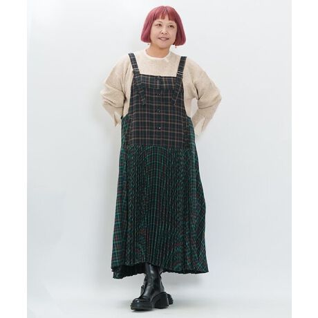 ◆2つのチェックにときめくプリーツがご褒美のジャンスカ(大きいサイズ)◆